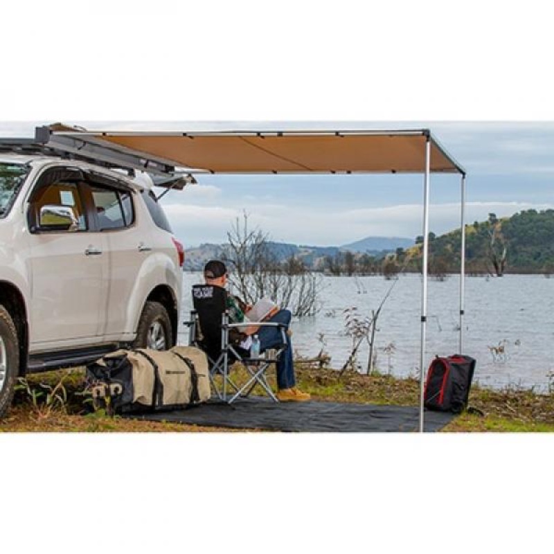 -Toldo retráctil transportable -Se puede instalar en la mayoría de los vehículos -Se ajusta al lateral de la mayoría de los portaequipajes y barras de techo -Incluye patas telescópicas anodizadas de altura ajustable, tiras de velcro para asegurar el techo, piezas de aluminio reforzadas y funda ultra resistente de PVC reforzada con nylon -Fabricado en lona de poliéster/algodón de 300gsm anti desgarro -Impermeable y clasificado UVP 50+ -Disponible en tres tamaños: 2x2.5m/2.5x2.5m/1.25x2.1m .Awning/Toldo 2500x2500mm Funda de alumino, Luz blanca/ambar