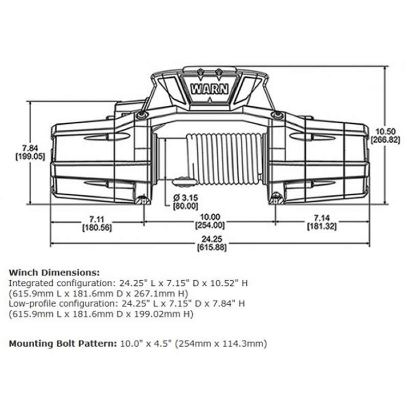 -Motor de alta velocidad y un tren de engranajes único proveen una velocidad de línea 33% más rápida que la línea ZEON y mucho más durable -Embrague controlado a distancia se activa y desactiva con el control remoto inalámbrico avanzado. El control remoto permite entregar y recoger cable, se ha eliminado el embrague manual -Capacidad para conectar 2 accesorios de 12v directamente al malacate y utilizarlos mediante el control remoto -Resistente al agua (cumple la norma IP68) -Tambor de gran diámetro reduce el desgaste de la línea, disipa la temperatura de los frenos y cuenta con un sistema de anclaje de línea único para mayor resistencia -Paquete de control convertible permite instalaciones visibles o de bajo perfil -El mejor sistema de freno de cono de su clase sostiene la carga completa del vehículo -Garantía limitada de por vida para las partes mecánicas y de 7 años para los componentes eléctricos -Capacidad de tracción de 10000 libras o 4536kg en una sola línea -Relación de reducción de engranajes 162:1 -Consumo máximo de 465 amperes -Velocidad de línea de 5.6 pies por minuto